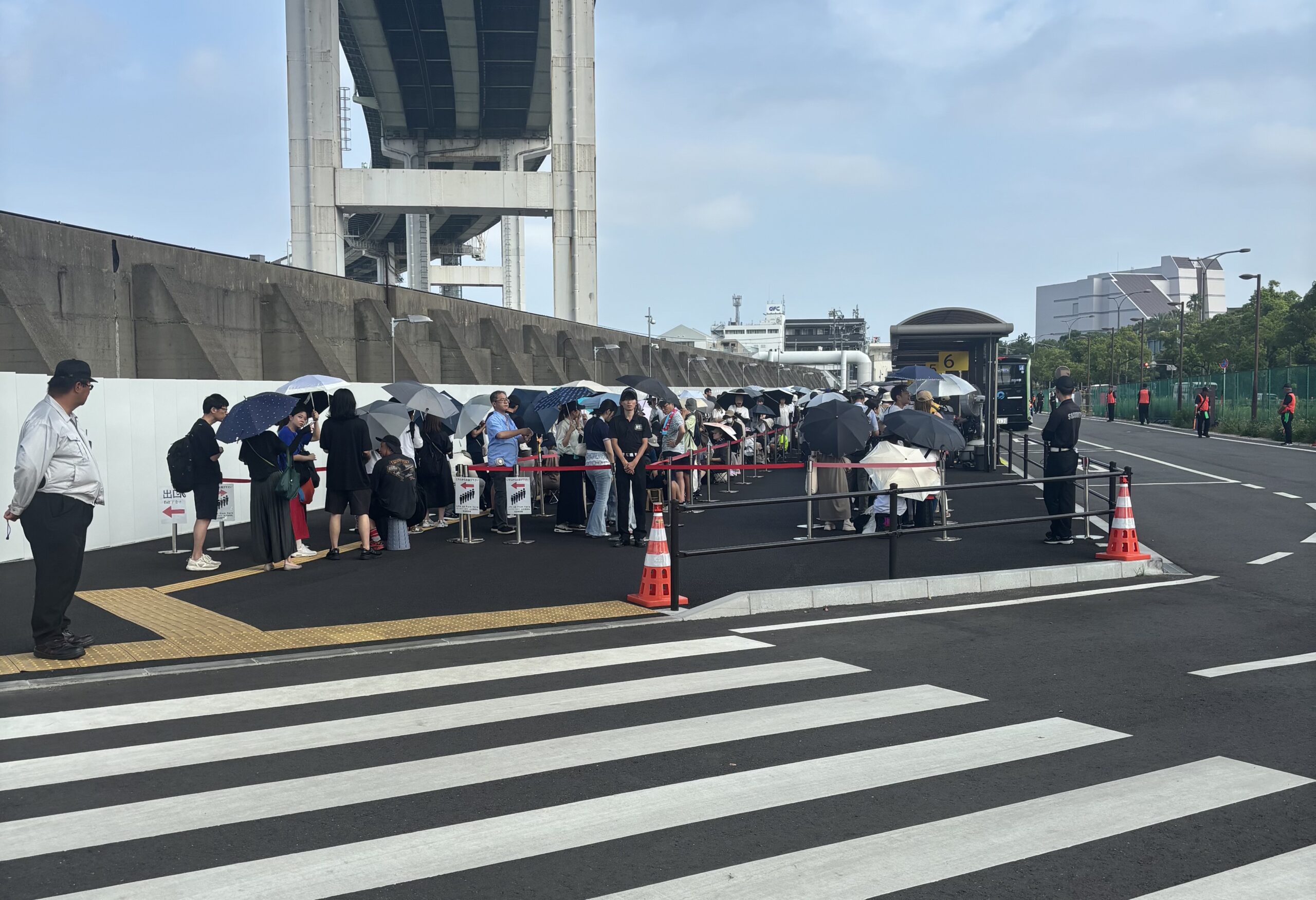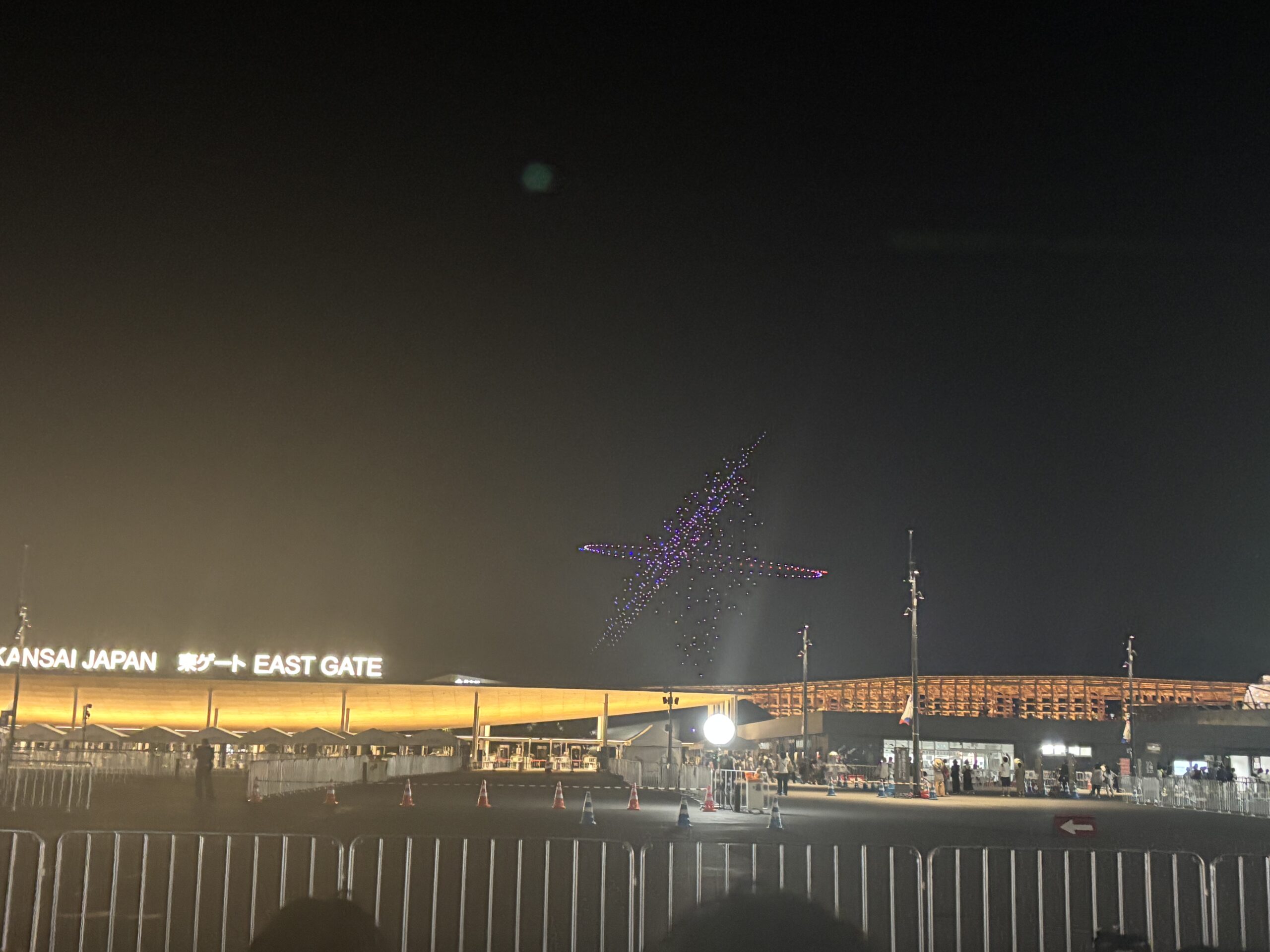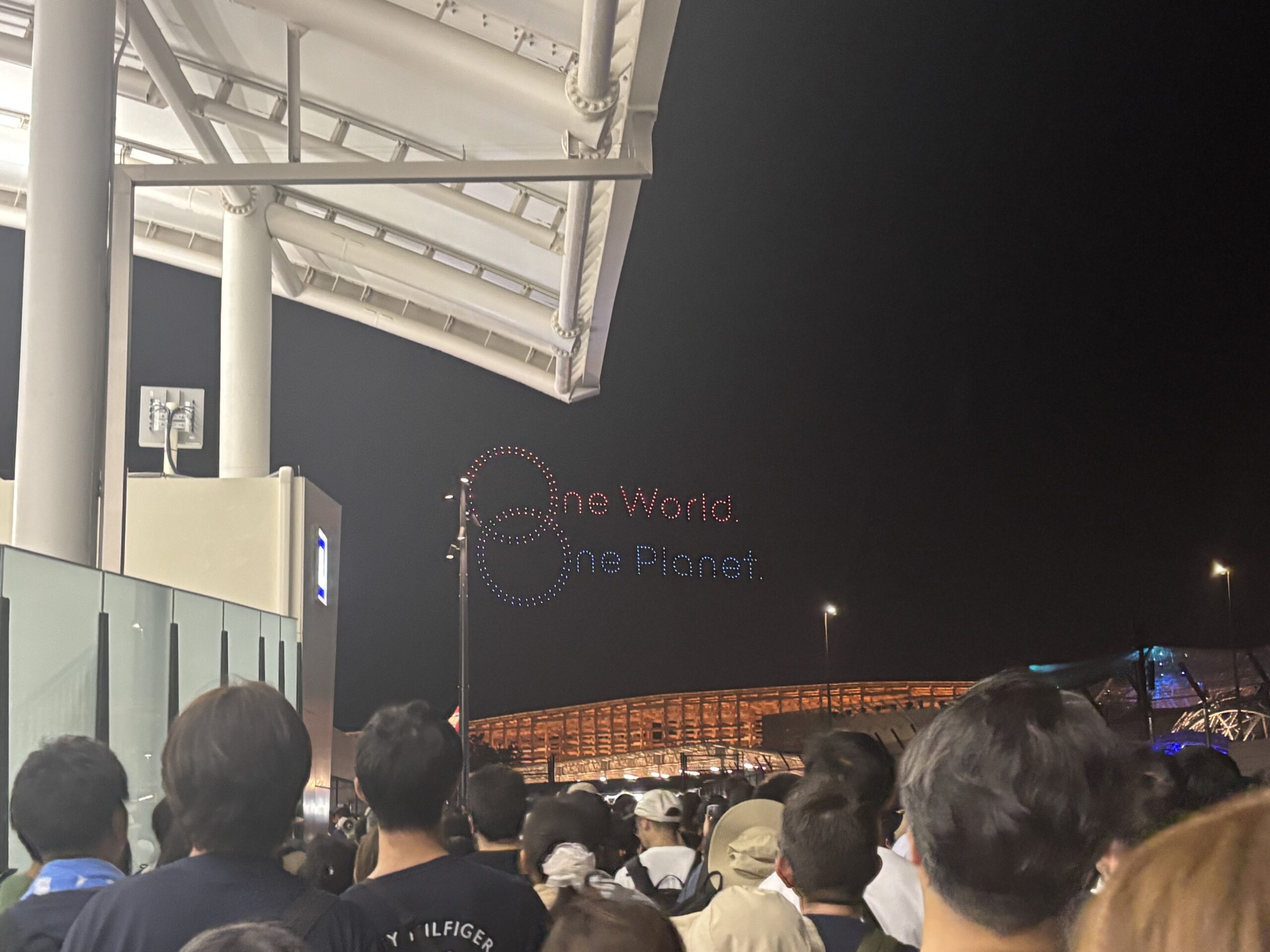 東ゲートから駅までは、25分くらいかかりました。警備の方も、「ドローンショーを見ながらでいいので、少しずつ進んでください〜」と優しいお言葉。