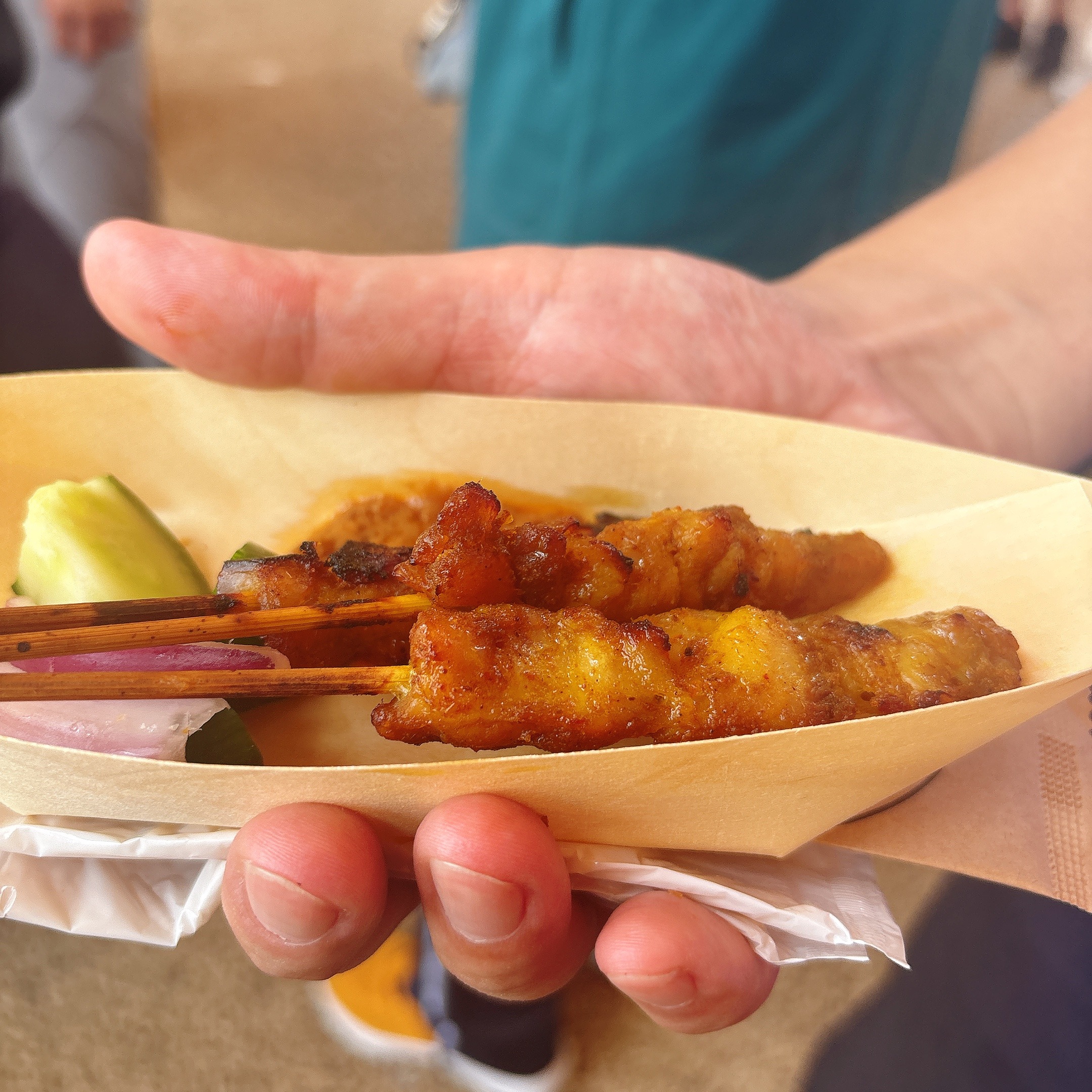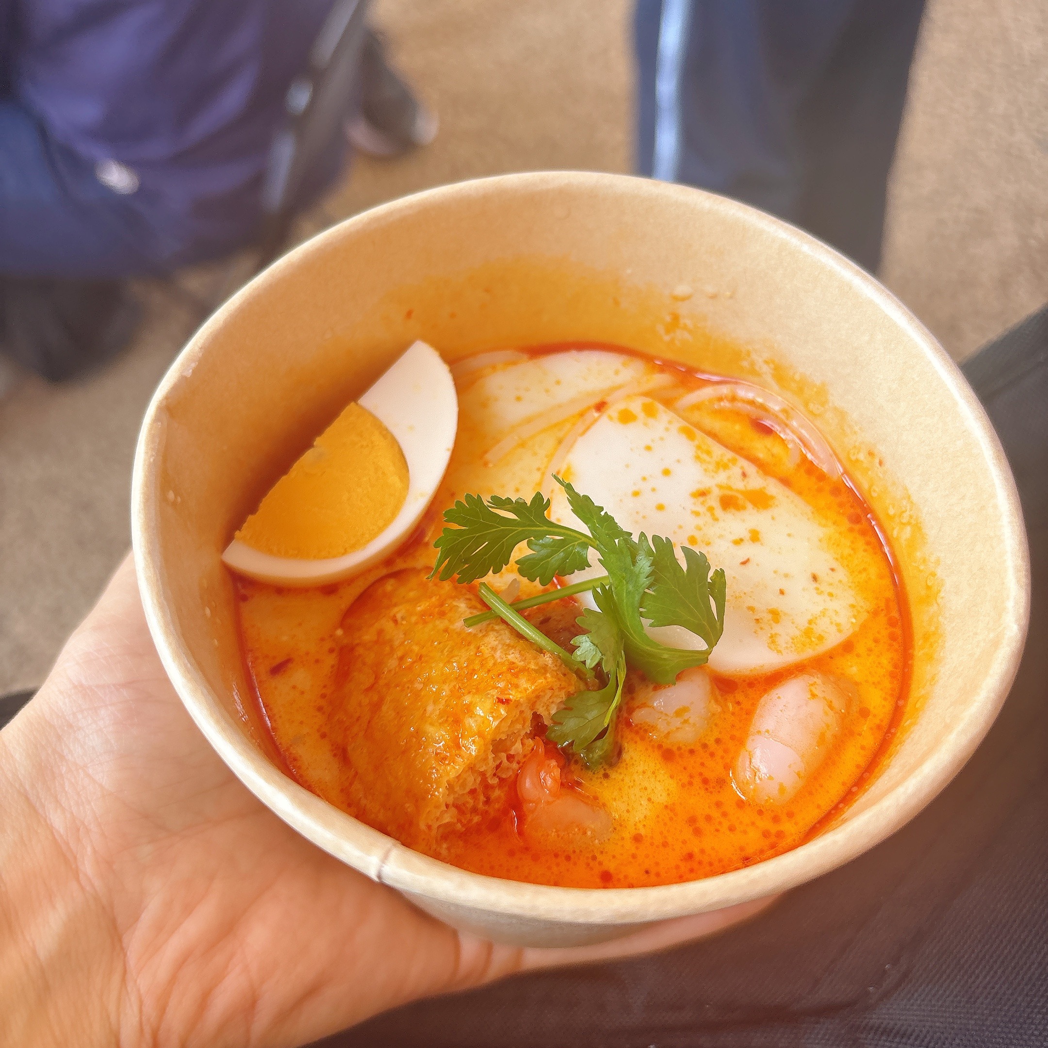 • 12:00 並びながらシンガポール「ラクサ」「チキン・サテー」を食べる