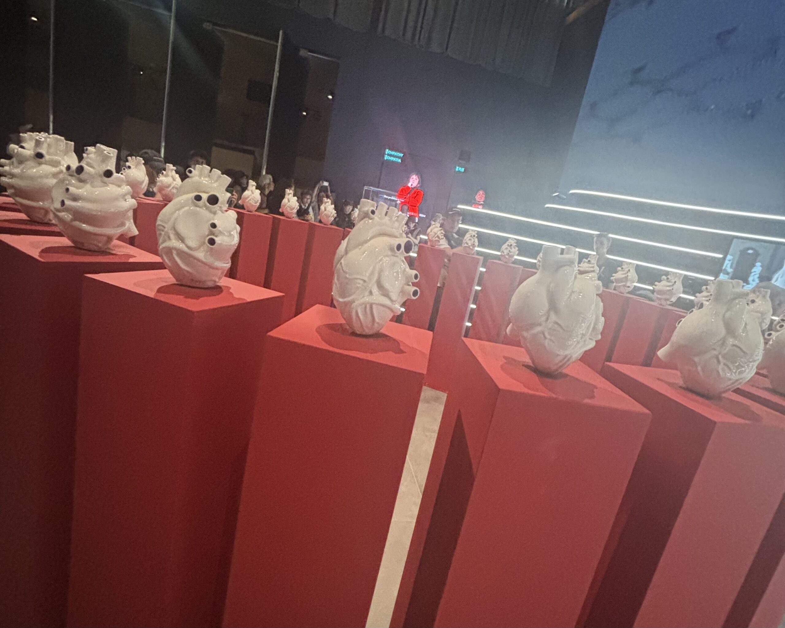 中へ入ると、展示が通路の両サイドにあります。ゆっくり見たいところですが、みんなどんどん先へ進んでいくのでゆっくり見ている時間はありませんでした。