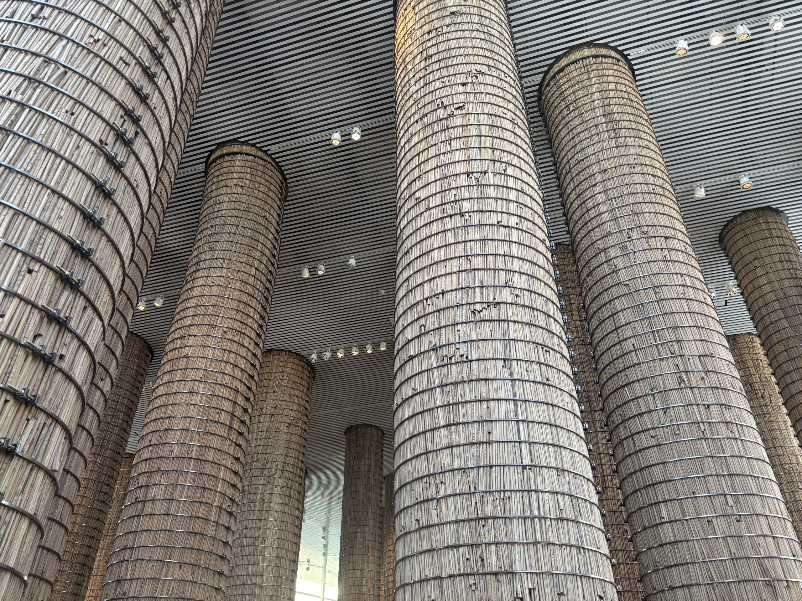 たくさんある柱のようなものは、乾燥させたヤシの葉を束ねた「アルダアン」というもの。不思議な空間です。
