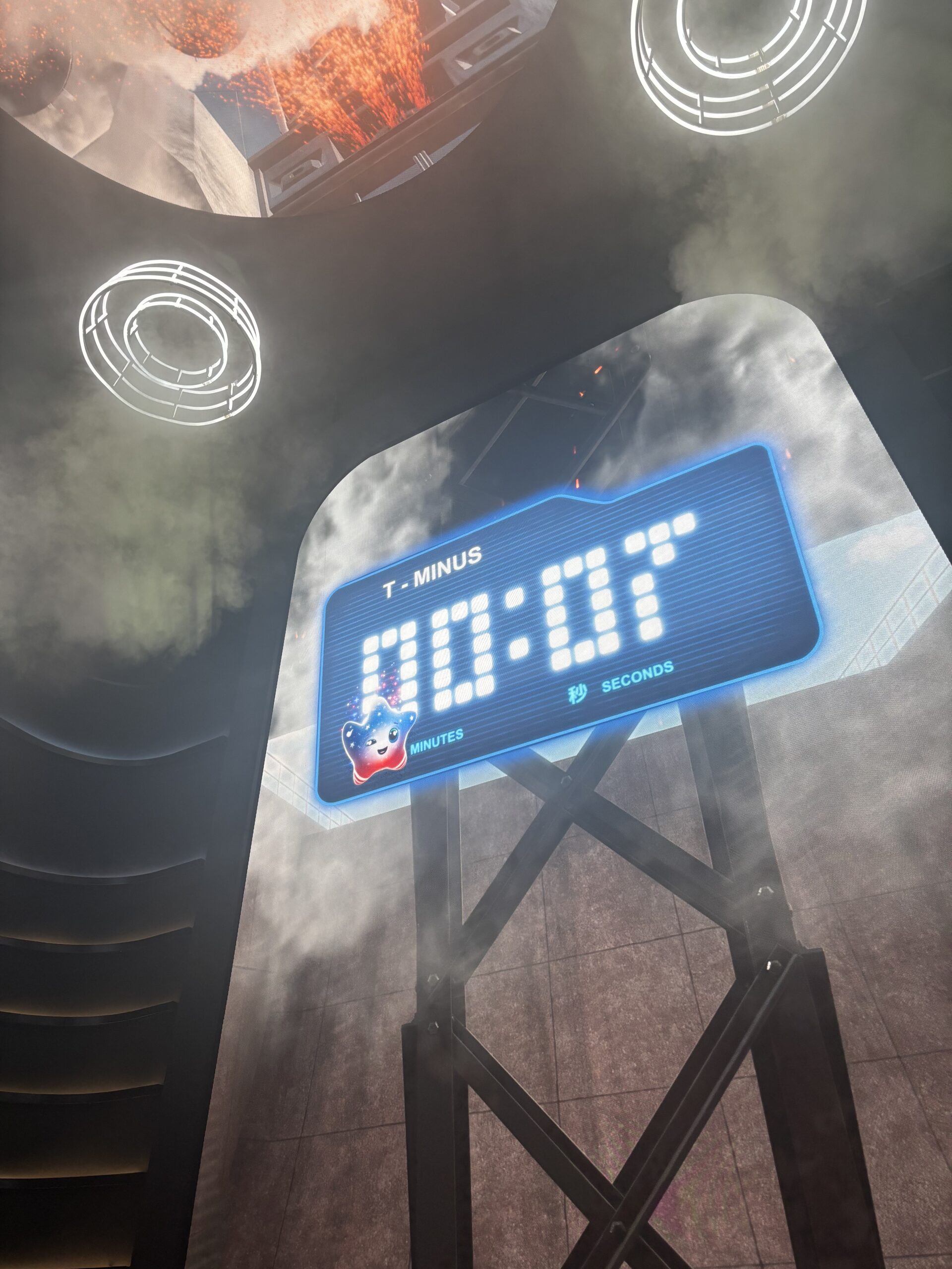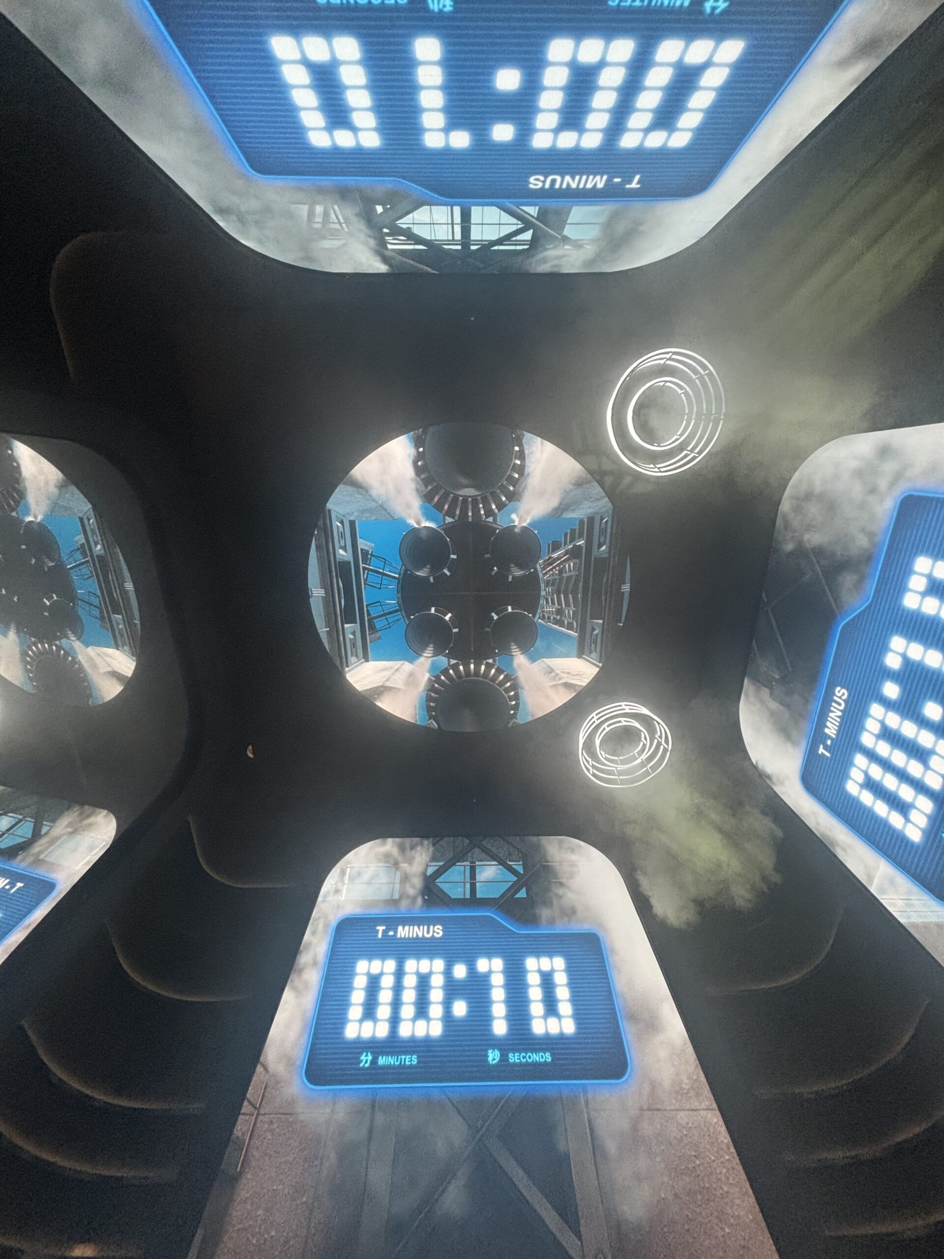ロケットの打ち上げ体験!スクリーンに囲まれて、打ち上げのカウントダウン。