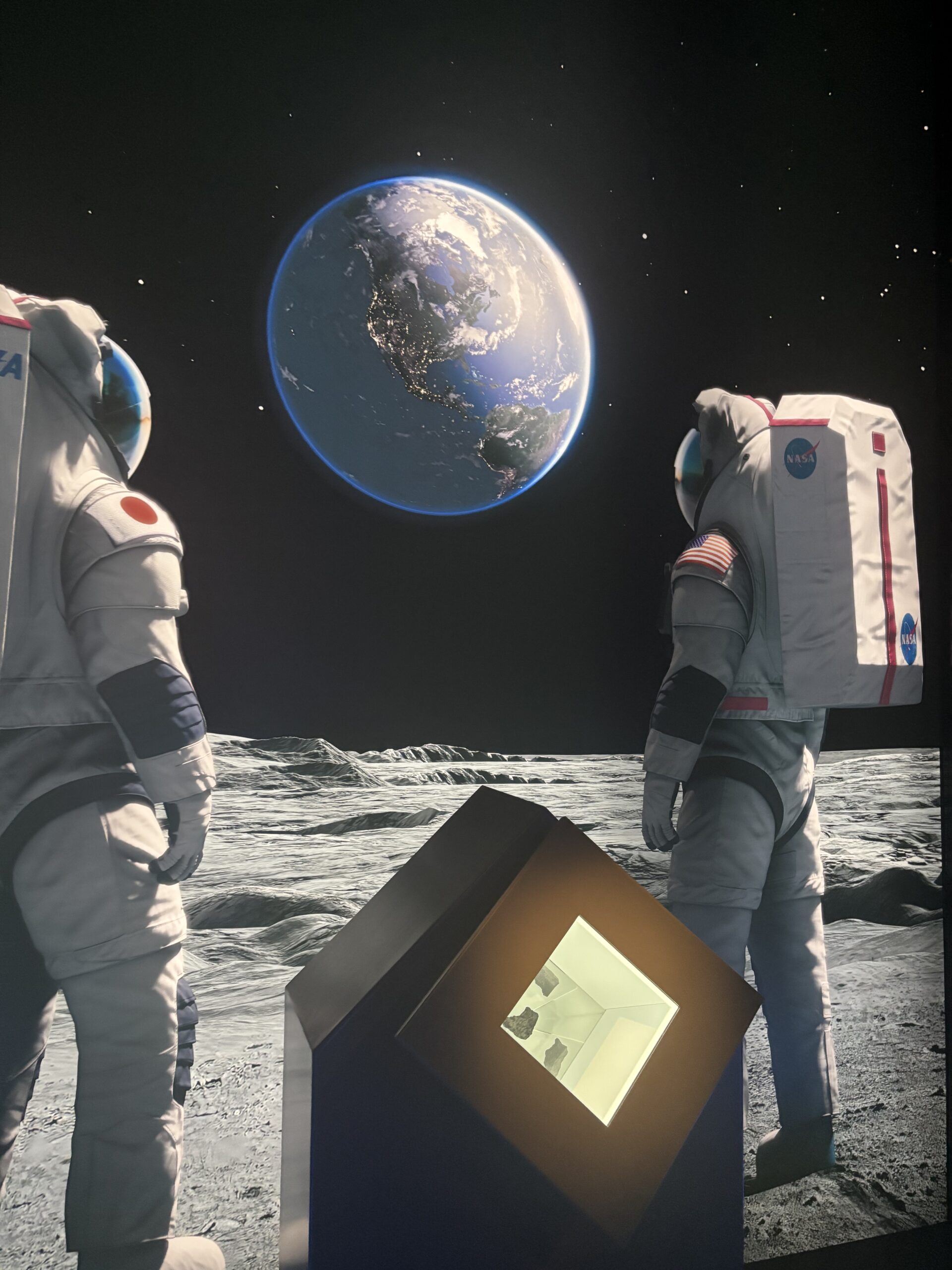 スクリーンのある部屋を出て通路を進むと、月の石があります。列に並び、1人1枚写真を撮ることができました!