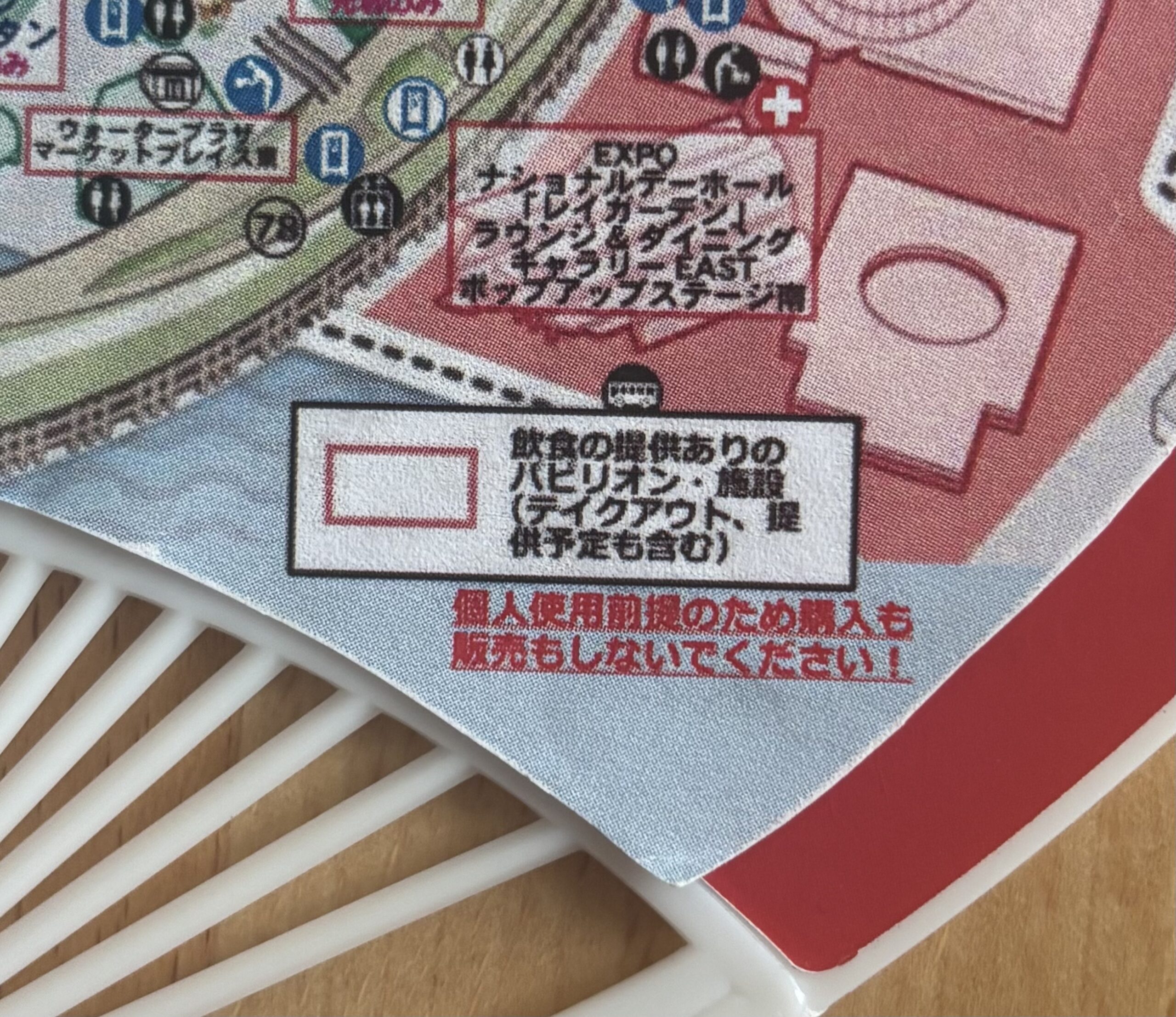つじさんの非公式マップでは、テイクアウト含む飲食提供があるパビリオンが一目でわかります。